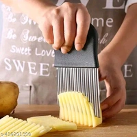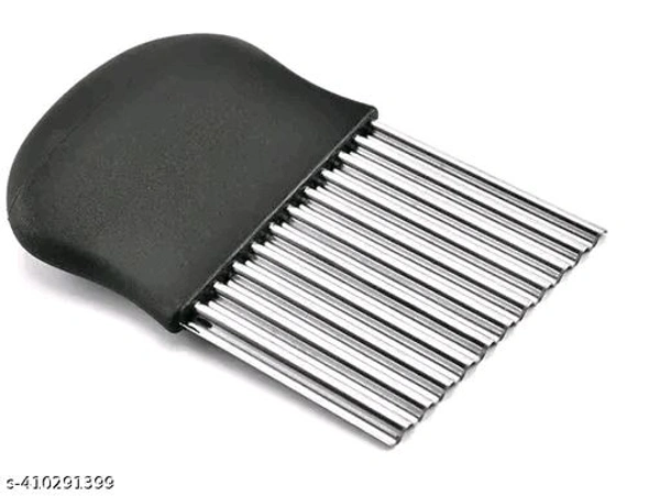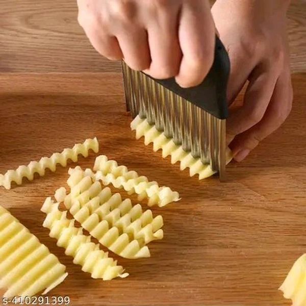 Name: CEPLO 1 PCs Crinkle Cut Knife Fork Slicing Helper Stainless Steel Fruit and Vegetable Wavy Chopper Knife, Safe Potato Cutter Onion Cutter French Fry Cutter,